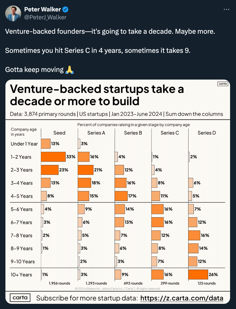 It’s now just taking longer and longer to get to an exit, and that’s ok! My advice, especially to investors, is to buckle up and settle in. The ones with the most patience will win.